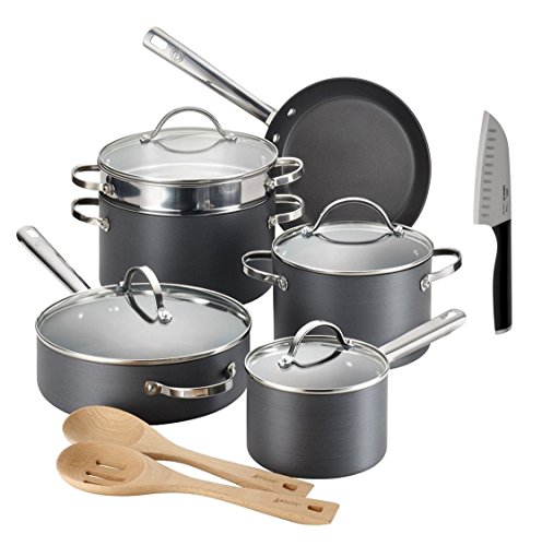 Product Highlight Anolon 12-Pc Professional Hard-Anodized Nonstick Cookware Set & Calphalon 5-Inch Santoku Knife Bundle