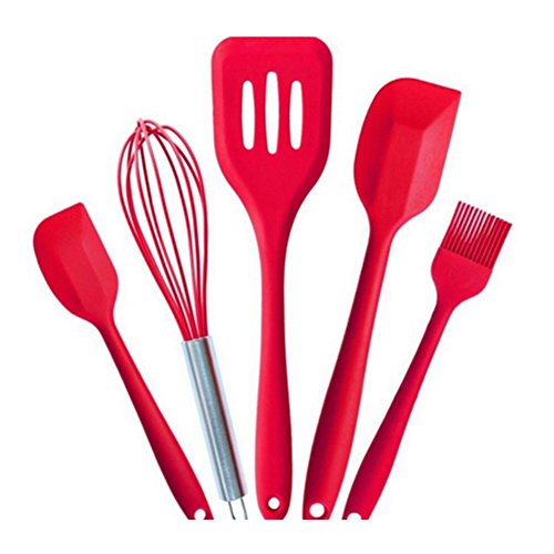 Product Highlight Petrista Silicone Cooking Utensil Set 5pcs Kitchen Utensils Kitchenware Spatula Egg Whisk Brush Slotted Turner Sets Kitchen Utensils (Red 01)