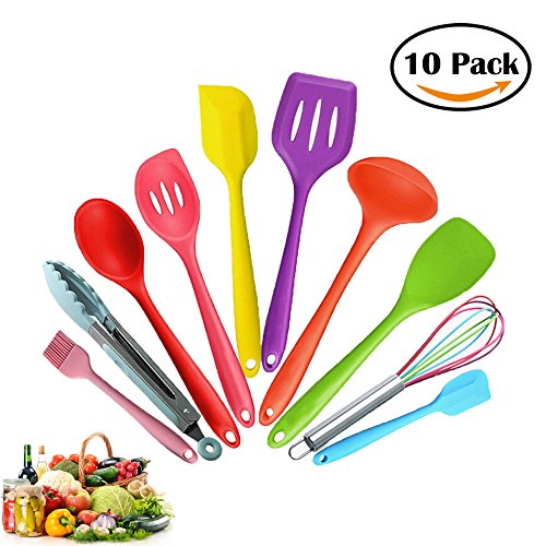Product Highlight Silicone Kitchen Utensil 10 pieces,Color silicone non-stick silicone kitchenware set,Environmental cooking tool,silicone kitchen utensil set with Basting brush,Mixing Spoon,Slotted Spoon Tools,Gadgets